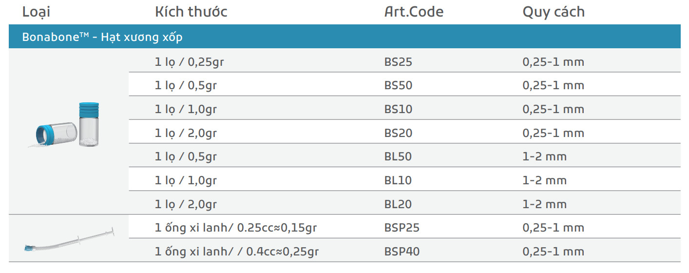 BonaboneTM Vật liệu ghép xương có nguồn có nguồn gốc từ bò